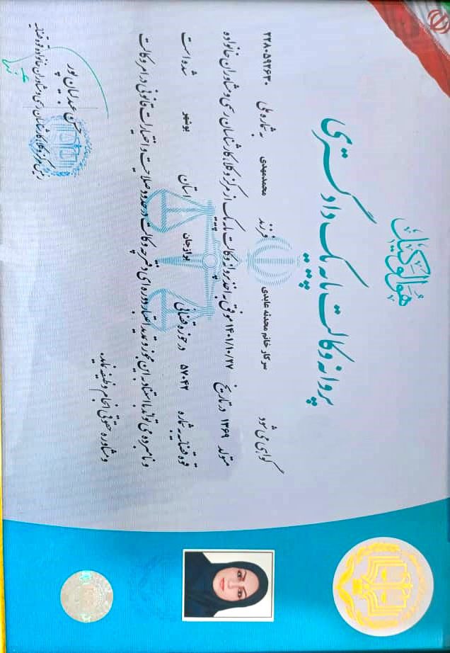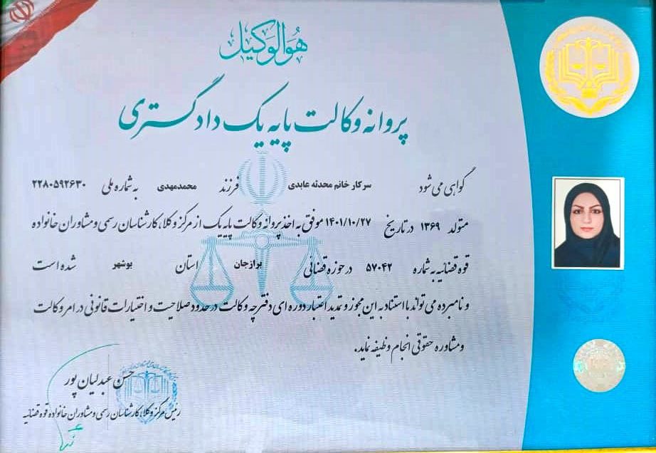 مشاوره حقوقی: با بهرهگیری از دانش و تجربه وکلای پایه یک دادگستری، در تمامی زمینههای حقوقی – خانواده – کیفری – ملکی – ثبتی – شرکت ها و …